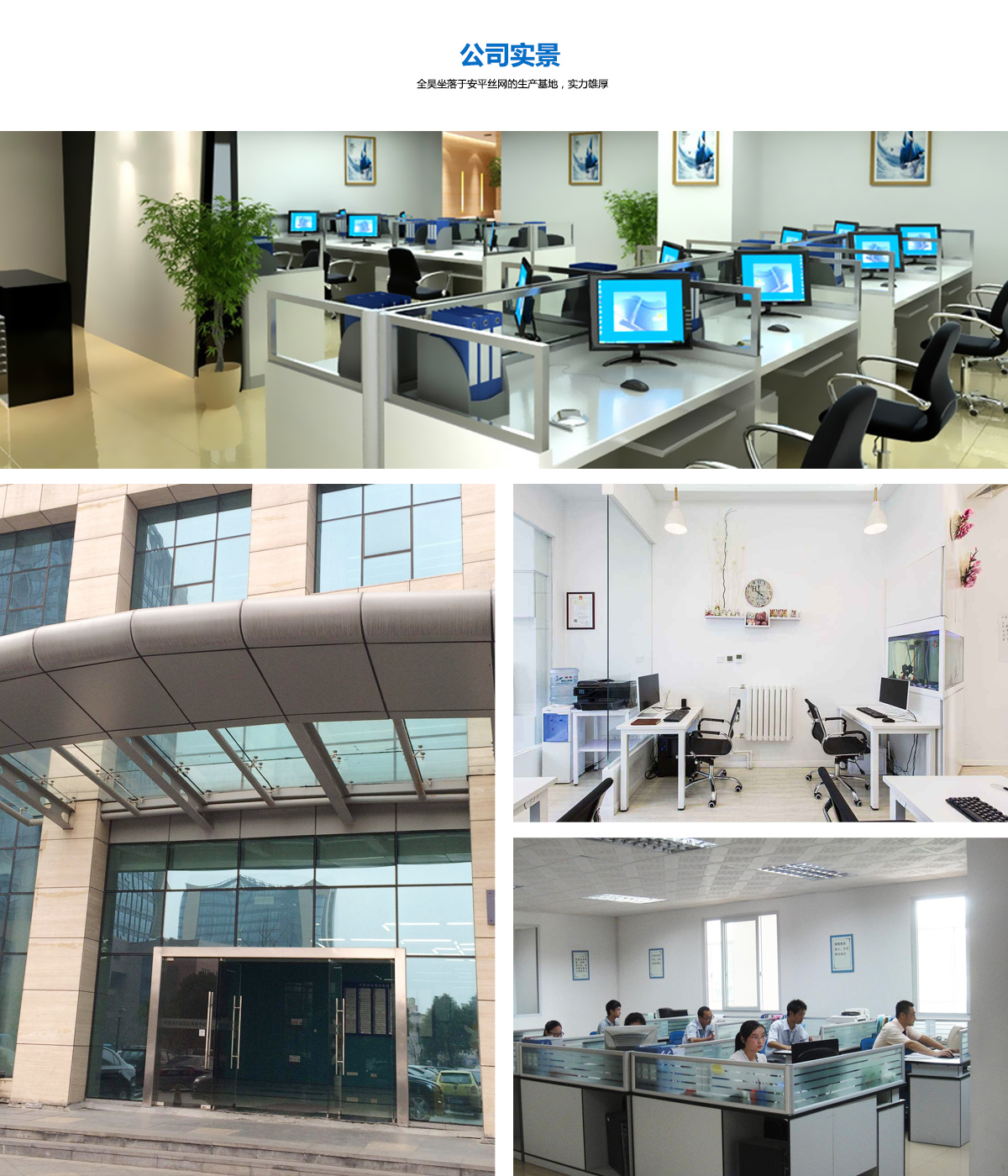 安平縣全昊金屬絲網(wǎng)制品有限公司位于中國著名的“絲網(wǎng)之鄉(xiāng)”河北安平縣。我廠是集拉絲、織網(wǎng)、壓彎、噴塑、浸塑的實力大的絲網(wǎng)生產(chǎn)企業(yè),是致力于石籠網(wǎng)、護欄網(wǎng)以及其他各種絲網(wǎng)制品的生產(chǎn)與研發(fā)廠家。擁有管理完善的組織機構(gòu),進步的生產(chǎn)設備,技術(shù)過硬的生產(chǎn)工人,技術(shù)力量雄厚。經(jīng)過20多年的發(fā)展,公司已成為絲網(wǎng)行業(yè)的知名企業(yè)。